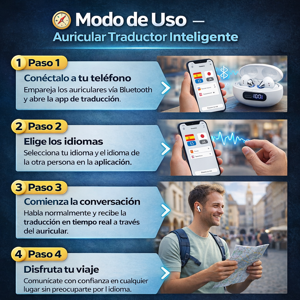 🌍✈️ Viajar ya no tiene por qué ser incómodo ni estresante. Con el Auricular Traductor Inteligente, puedes hablar con personas de cualquier país sin miedo al idioma, entender lo que te dicen en tiempo real y moverte con total confianza 🚶♂️🎧. Olvídate de los traductores del celular y las conversaciones incómodas 📱❌, disfruta cada viaje, conecta con locales y vive experiencias reales desde el primer día 🗣️💬. Si quieres viajar tranquilo y comunicarte sin barreras, este es el gadget que necesitas. ✅🔥