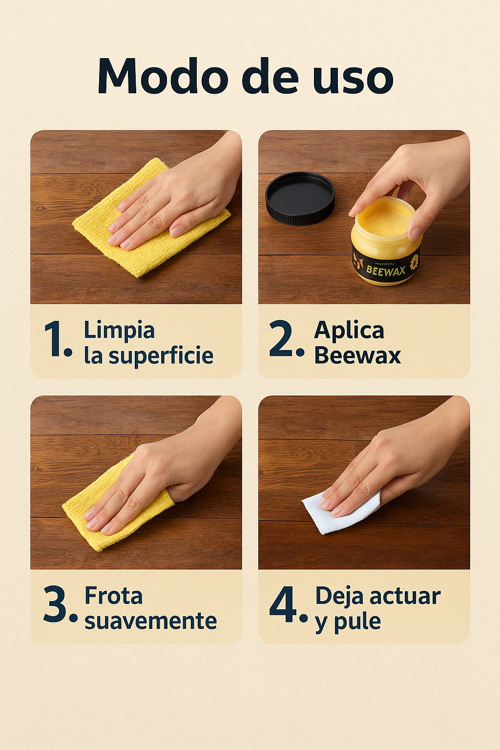 ¿Tus muebles se ven opacos, rayados o envejecidos? 🪵😩Con nuestro Restaurador Beewax vuelven a brillar en minutos ✨.Una sola aplicación y recuperas color, brillo y vida sin gastar en muebles nuevos.Ideal para mesas, repisas, sillas y puertas que ya no lucen como antes.