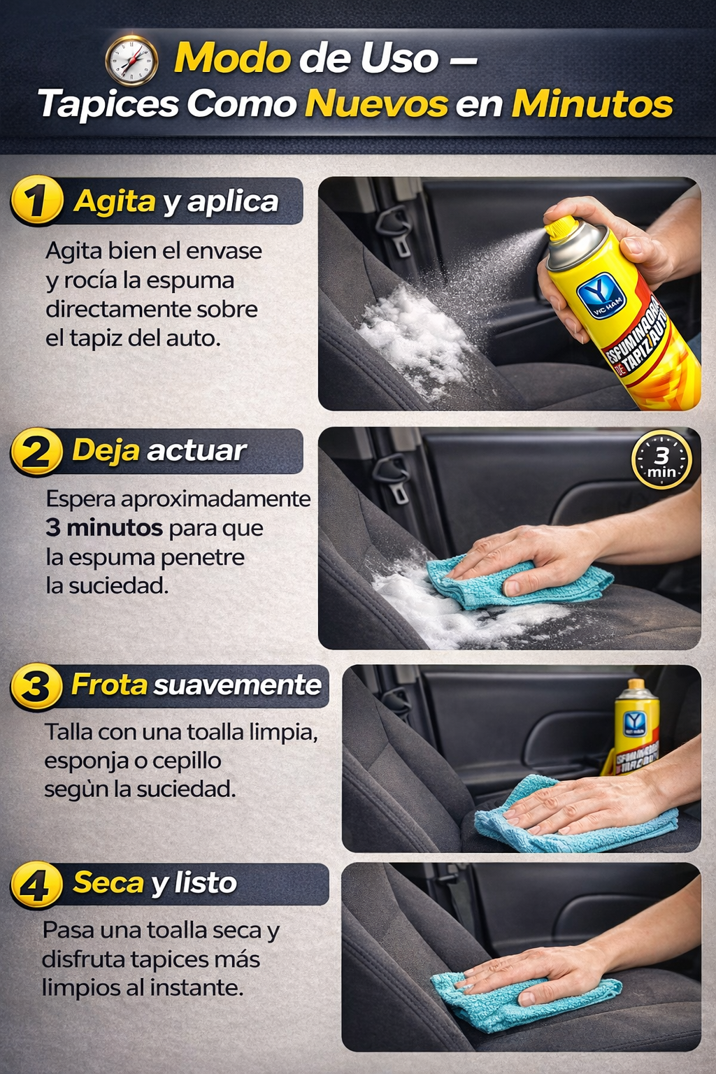 ✨ Con la Espuma Limpiadora de Tapiz Auto – Limpieza Profunda – Tapices Como Nuevos en Minutos puedes devolverle la vida a los asientos desde casa, sin agua 💦 y sin gastar en car wash 💸