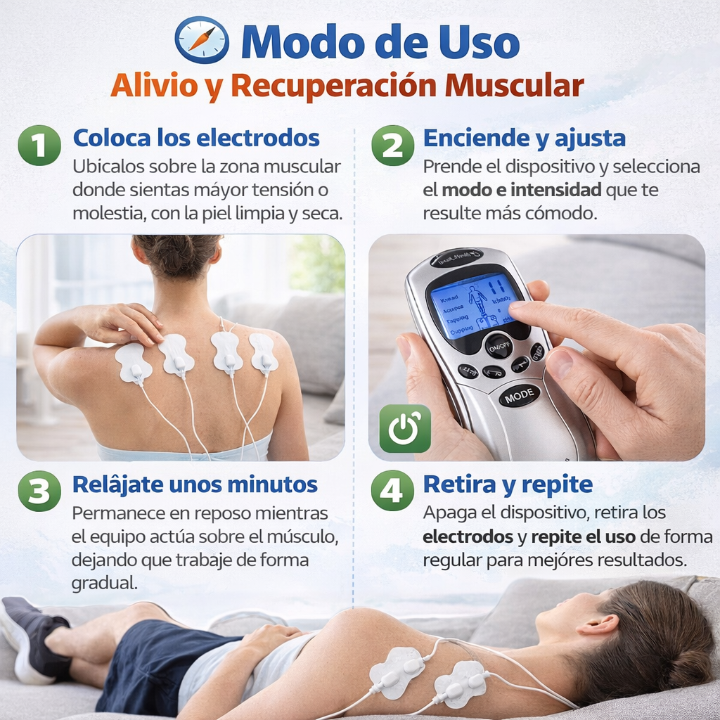 💆♂️ Con nuestro Electroestimulador TENS, puedes apoyar el alivio muscular y relajar zonas tensas desde la comodidad de tu casa, en solo minutos.