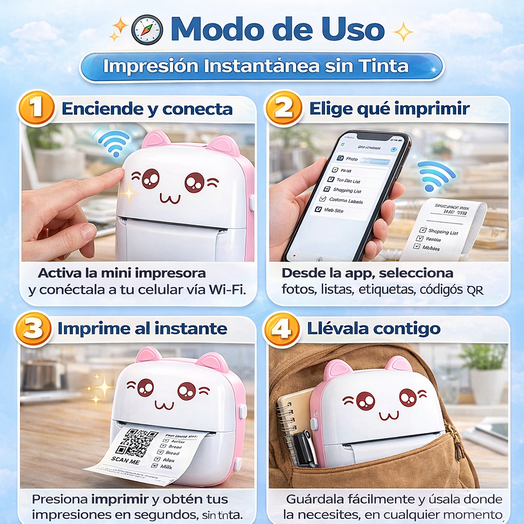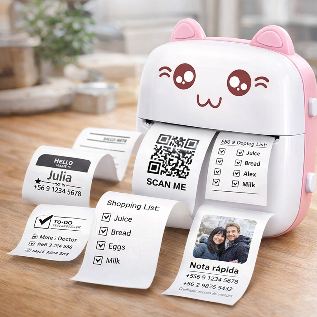 Imprime listas, etiquetas, notas, códigos QR o mini fotos en segundos, directo desde tu celular 📱⚡