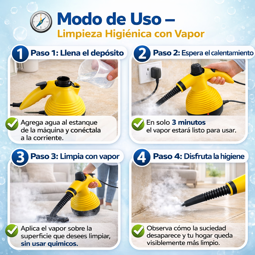 💨🧼 Mira cómo el vapor actúa al instante y deja tus superficies visiblemente más limpias, sin químicos 🚫🧴.Con la Máquina Limpiadora a Vapor – Higiene Profunda, la suciedad se elimina en minutos ⏱️ y tu hogar queda fresco, limpio y seguro para toda la familia 🏡✨.Menos esfuerzo, más higiene y resultados que se ven desde el primer uso ✔️