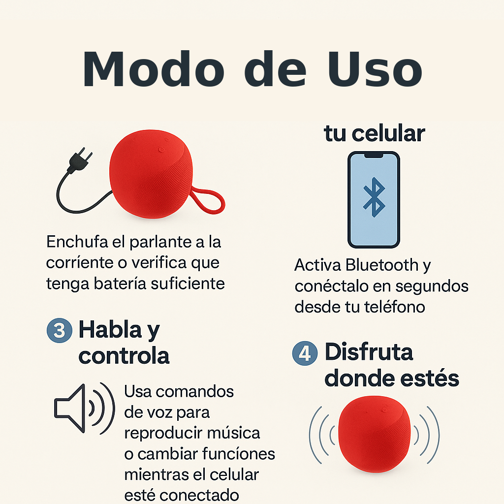 ¿Te pasa que tu parlante solo funciona bien en la casa y tienes que tocarlo cada vez que quieres cambiar la música? 😤Con nuestro parlante inteligente portátil, controla todo con tu voz y disfruta sonido 360° donde estés 🎶🗣️. Más comodidad, menos interrupciones.