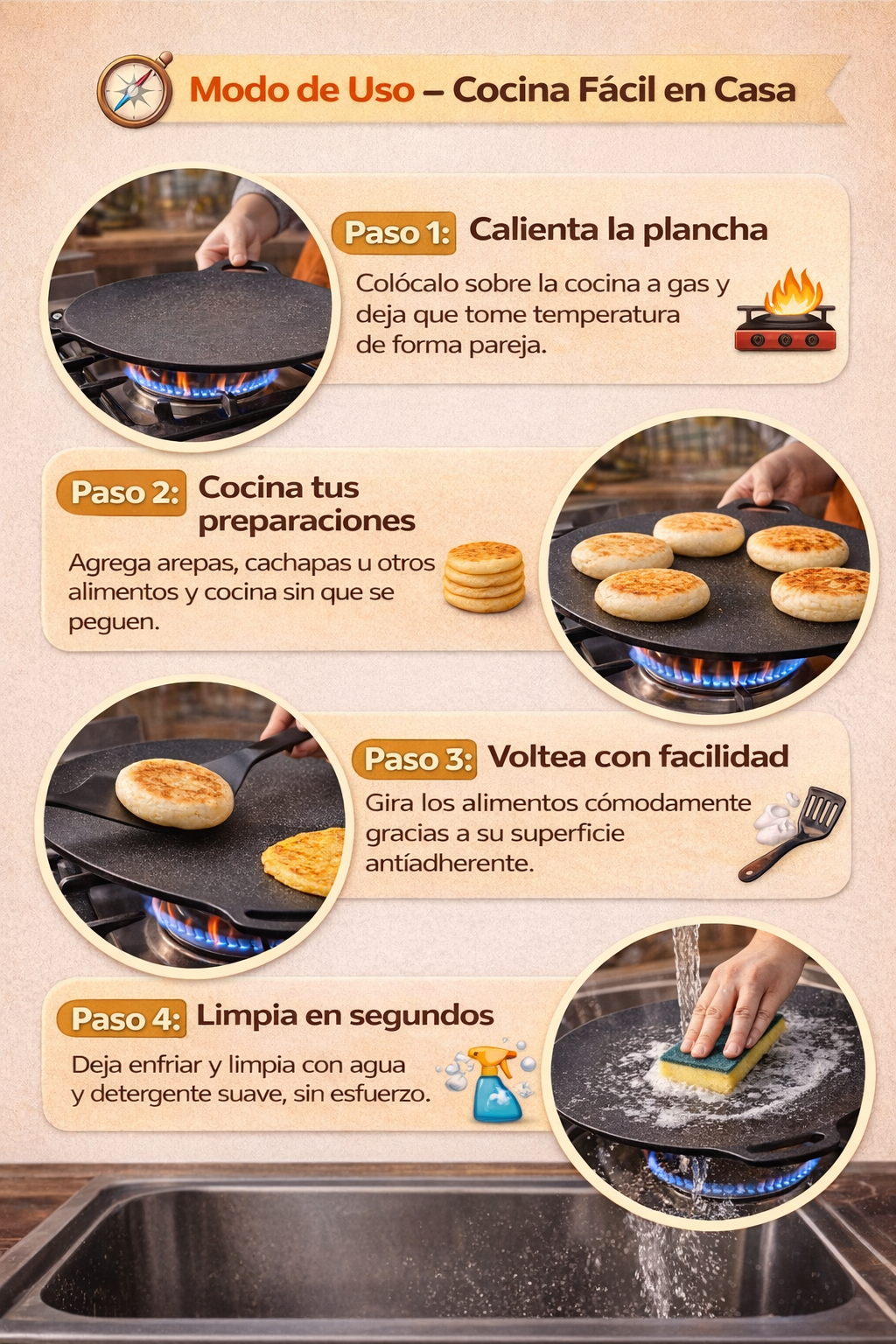 Con la plancha Antiadherente cocinar vuelve a ser un placer 💛