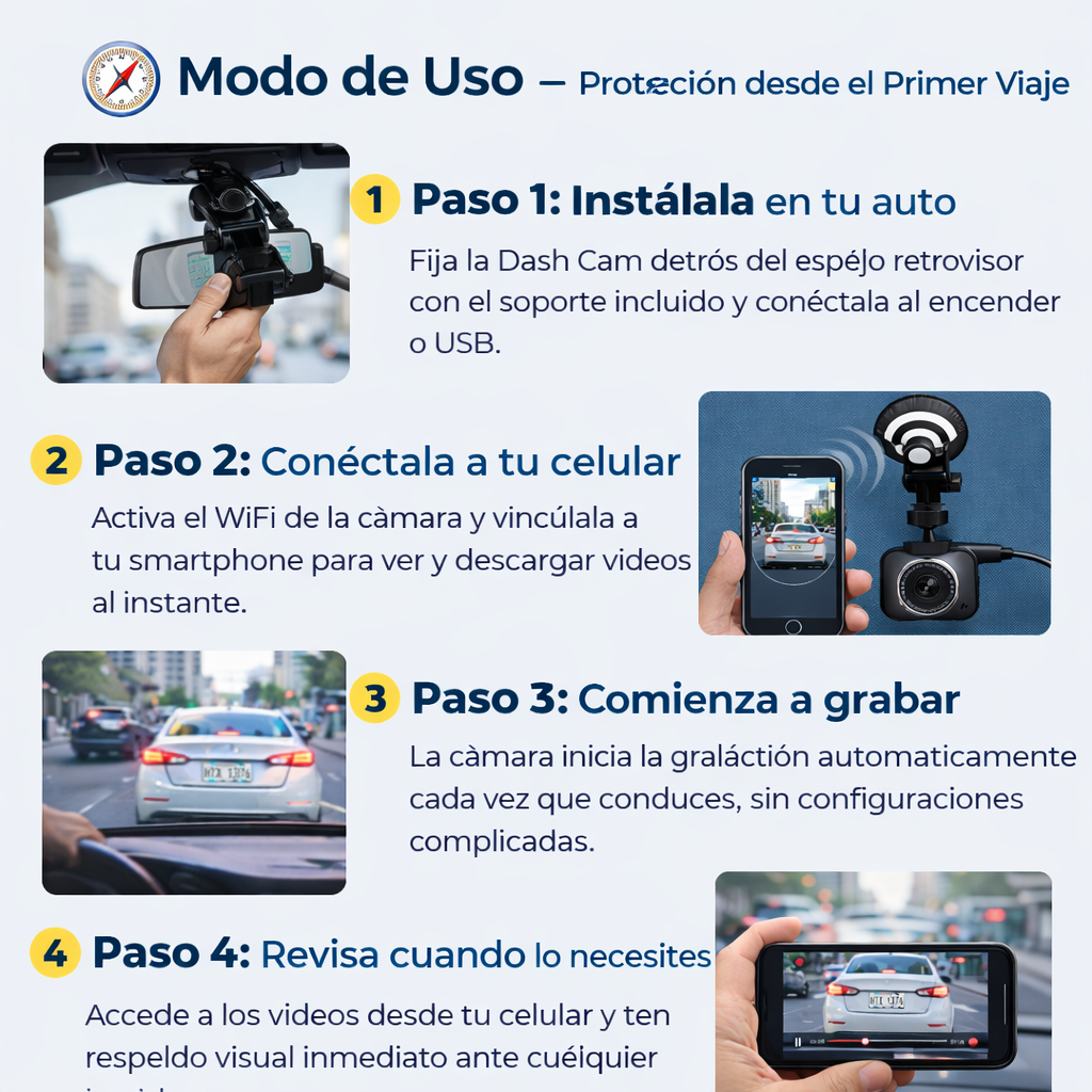 🚗🔒 Hoy manejar sin respaldo visual es un riesgo innecesario. Cada trayecto puede cambiar en segundos y, cuando pasa algo, tener pruebas claras lo es todo 📹📱. Con Dash Cam para Auto con WiFi, conduces con tranquilidad sabiendo que todo queda grabado y disponible al instante ante robos o accidentes ⚠️✅. Protege tu auto, tu tiempo y tu tranquilidad desde el primer viaje. No esperes a necesitarla para darte cuenta de lo importante que es ⏳💥.