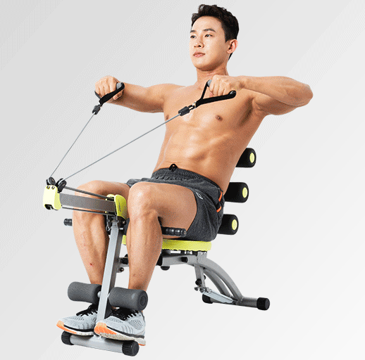 • 1️⃣ Despliega y Ajusta-Coloca la máquina en una superficie plana, abre los brazos de resistencia y ajusta la tensión según tu nivel.